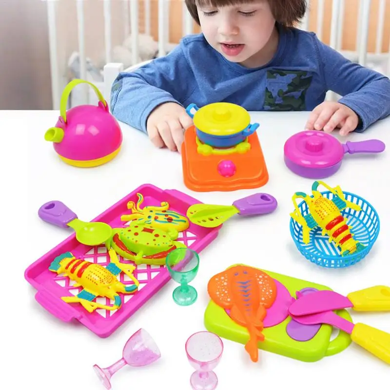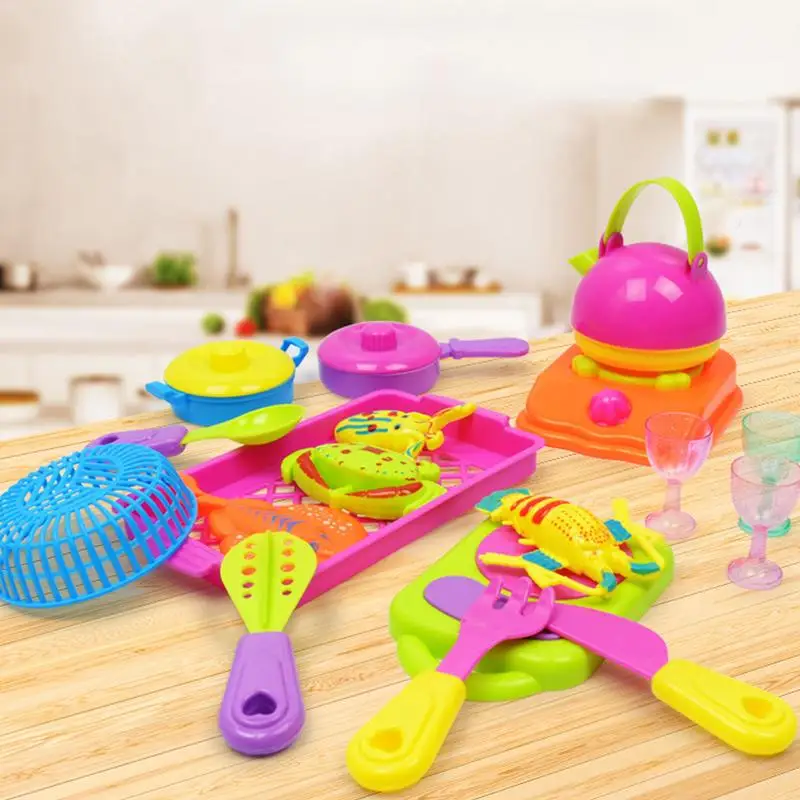 18-piece Kitchen Toy Set Babies' Children's Simulative Tableware Set Cooking Food High Quality Plas