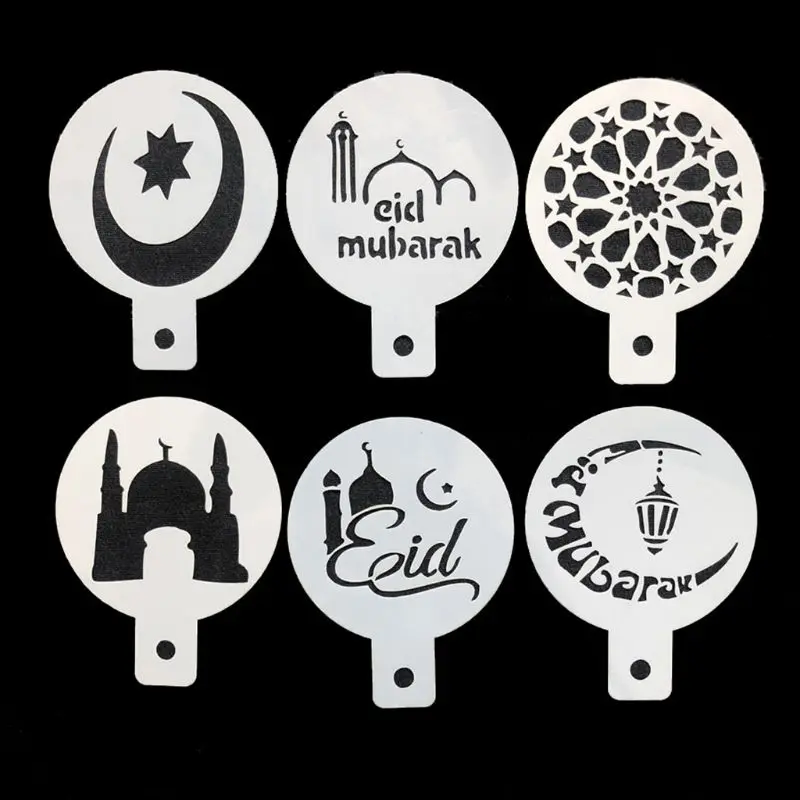 6Pcs/Set Eid Mubarak Ramadan Coffee Flower Spray Stencils Cake Mold Decorating DIY Mould Fondant Te