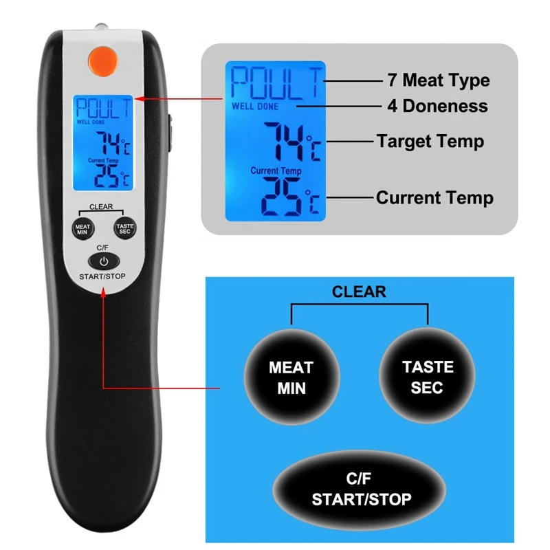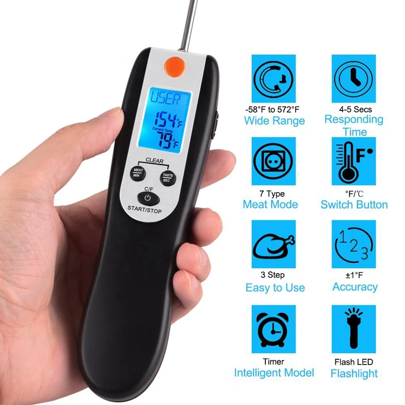 REVIEW TOP SELLER Kitchen Instant Read Digital Grill Cooking Food Thermometer 5.4 Inch Black