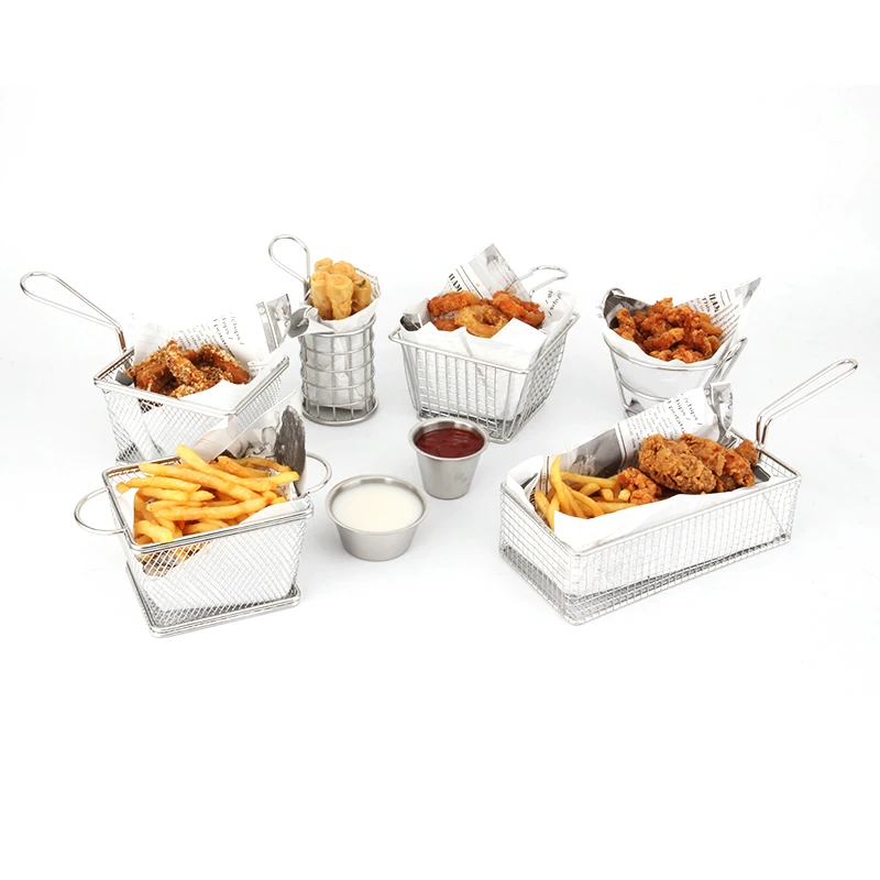 Mini 304# stainless steel French fries chips food basket Fried chicken container