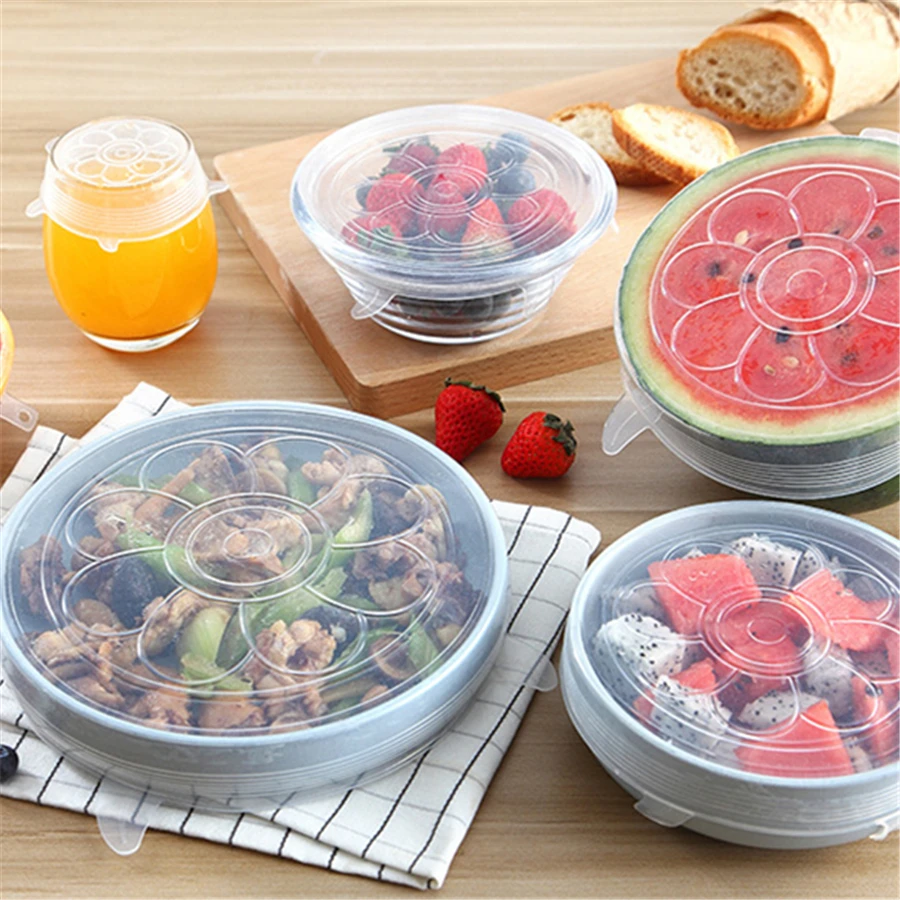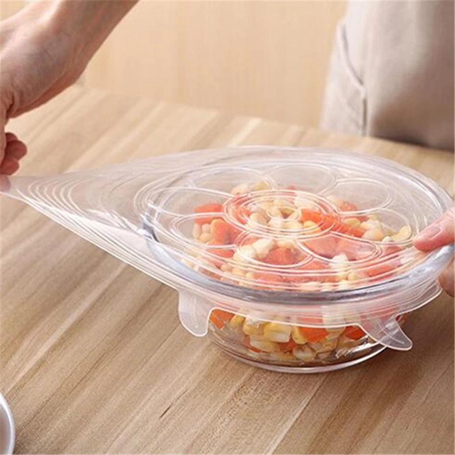 Hot Sale 6 Pack Silicone Stretch Lids Non Stick Silicone Heat Resistant Stretch Lids Covers for Keeping Food